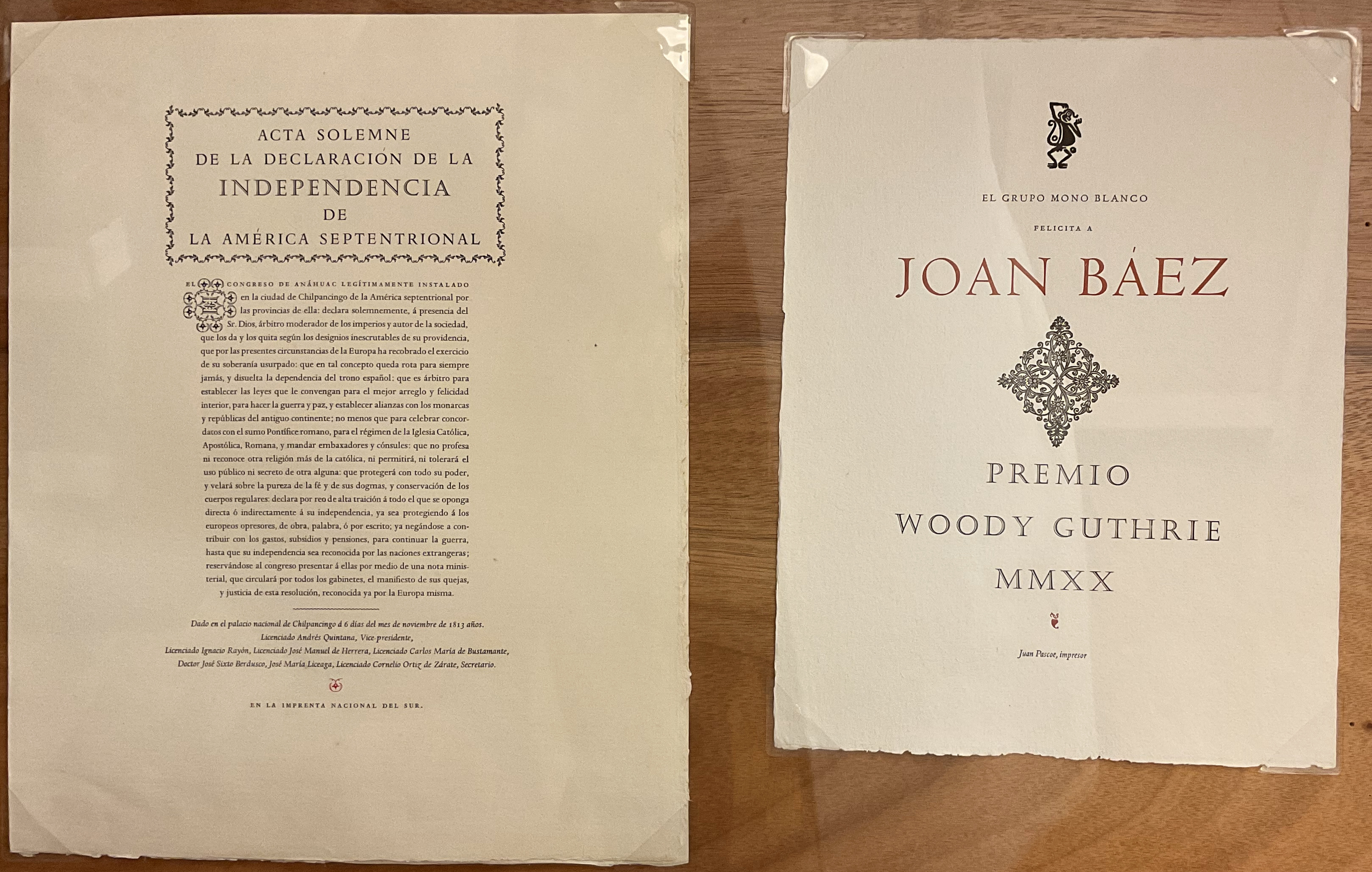 Entre las piezas exhibidas se encuentran tanto libros como impresos sueltos y hasta un cuaderno manuscrito de puño y letra del impresor. Algunas de estas obras ya se encuentran fuera de mercado, ya que una de las características más notorias de estas ediciones es su limitado tiraje, lo que ocasiona que se conviertan fácilmente en objetos de colección además de ser obras impresas en papeles de extraordinaria calidad y de gran cuidado tipográfico. Las impresiones que se pueden ver en la exposición temporal permiten apreciar las composiciones de la caja, la tipografía, los grabados y los variados temas de su interés, así como los elaborados para diversos autores.