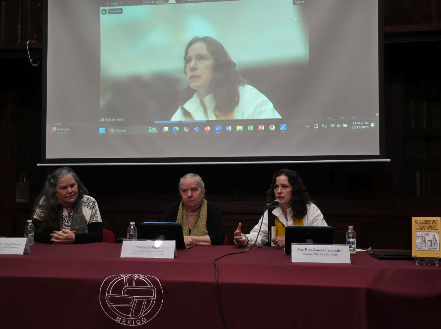 Dimensiones sensoriales en los relatos españoles de la conquista de Tenochtitlan es el título que se presentó en la Biblioteca José Lorenzo Cossío y Cosío el pasado 10 de octubre. Para comentarlo se presentó la editora Verónica Kugel, del Instituto Humboldt de Investigaciones Interdisciplinarias en Humanidades, A. C., Ana Rita García Lascuráin Valero, Museo del Chocolate (Mucho) y Verónica Loera y Chávez Castro, directora de Adabi de México, y Lara Wankel, autora del libro.