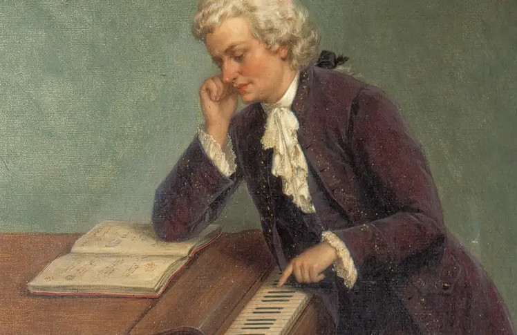 Wolfgang Amadeus Mozart en pleno proceso creativo, según la visión del pintor Josef Bueche | Imagen: tomada de dw.com/es