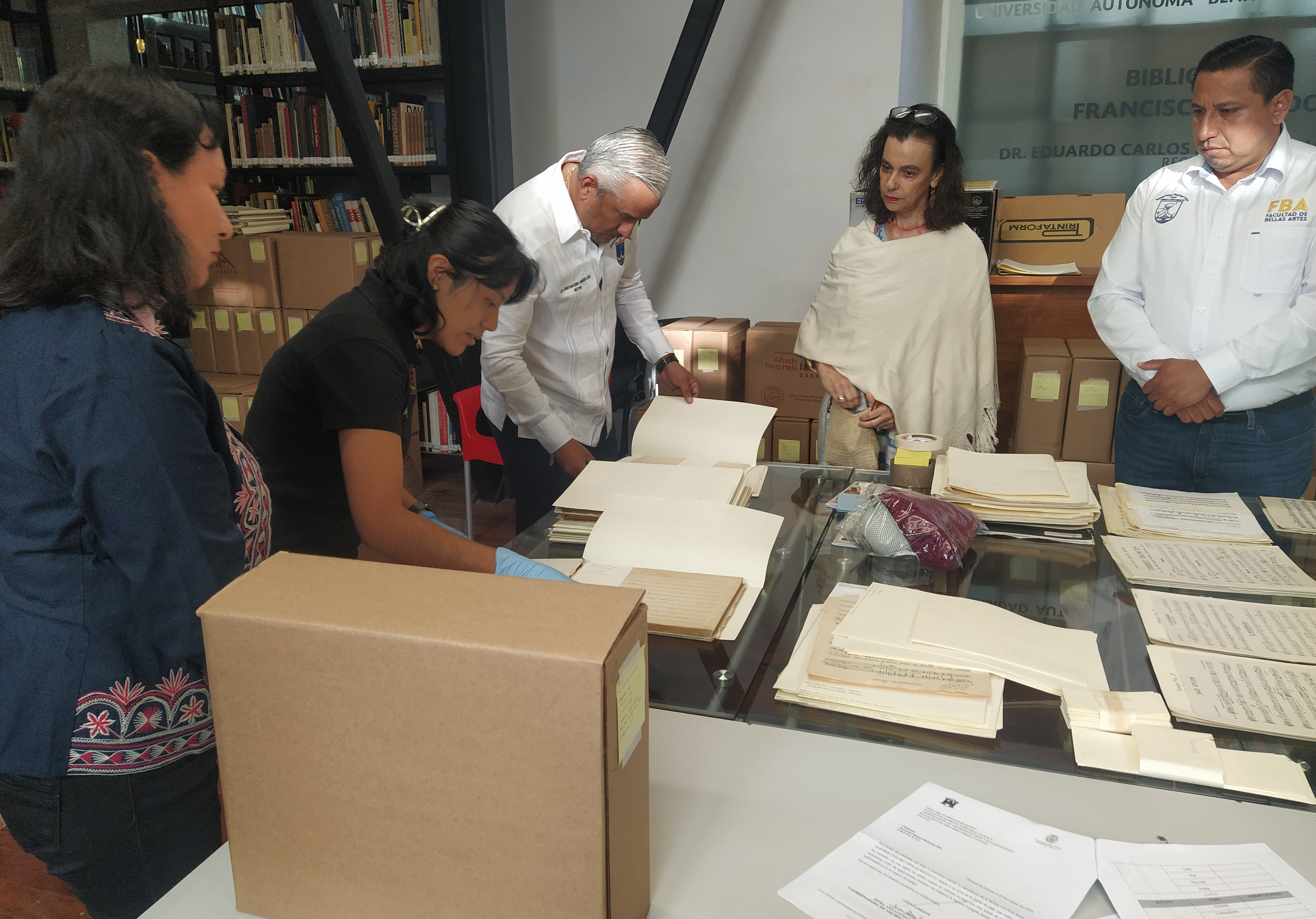 En la visita participaron la doctora María Isabel Grañén, presidenta de la FAHHO, y el rector de la UABJO, maestro Cristian Eder Carreño, quienes realizaron un recorrido para conocer el estado del proyecto y los procedimientos aplicados para el ordenamiento del material.
