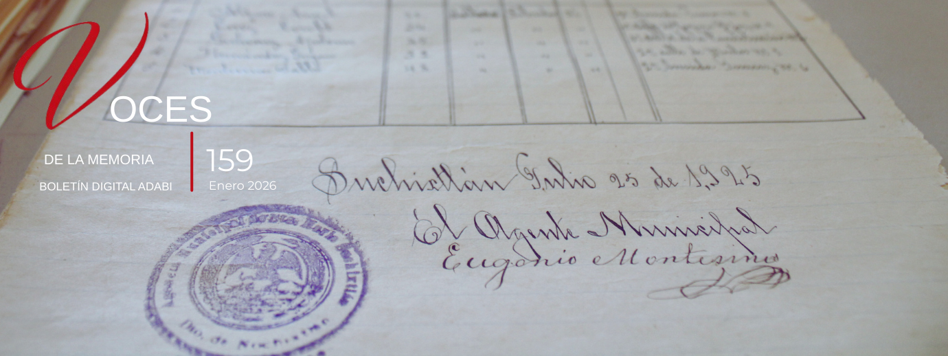Ha llegado el 2026 y Adabi reafirma su compromiso con la memoria de México. Si bien este número está dedicado a perdidas y búsquedas de los testimonios históricos que quedaron plasmados en papel, la conciencia de la importancia del patrimonio documental y bibliográfico sólo es posible cuando a las personas les interesa y se reflejan en él; de otra manera, los robos y desapariciones de documentos y libros seguirán ocurriendo en lo oscuro, incidiendo en los archivos y bibliotecas más vulnerables. Este número pareciera una reflexión, pero también una oportunidad para todos aquellos que están interesados en la permanencia de la memoria.