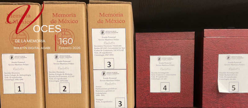 Para iniciar el año con el pie derecho, Adabi realizó la entrega del Inventario del Fondo Personal de Severo Martínez Peláez, archivo resguardado por la Benemérita Universidad Autónoma de Puebla. Acompañamos también a la FAHHO a la celebración de su 35 aniversario de vida con la emisión de un billete de Lotería y conocimos como la Biblioteca del Museo Regional de Durango (con el que Adabi trabajó en 2007) sigue aplicando nuevas estrategias para reforzar su consulta.